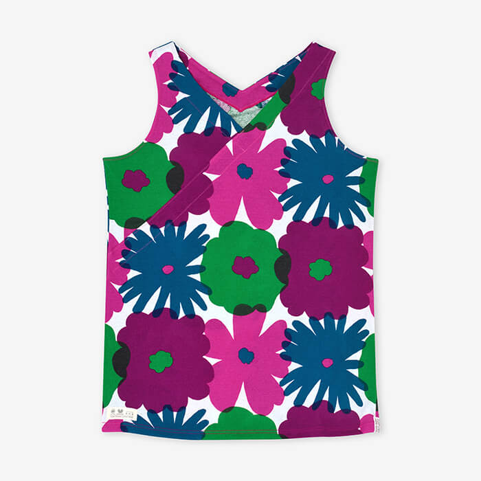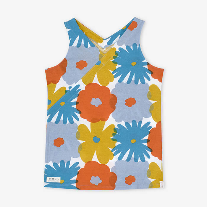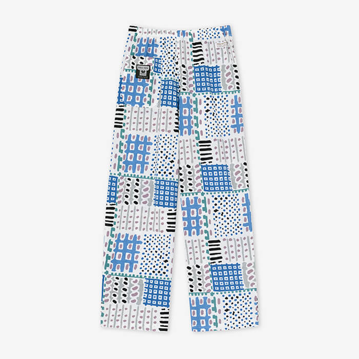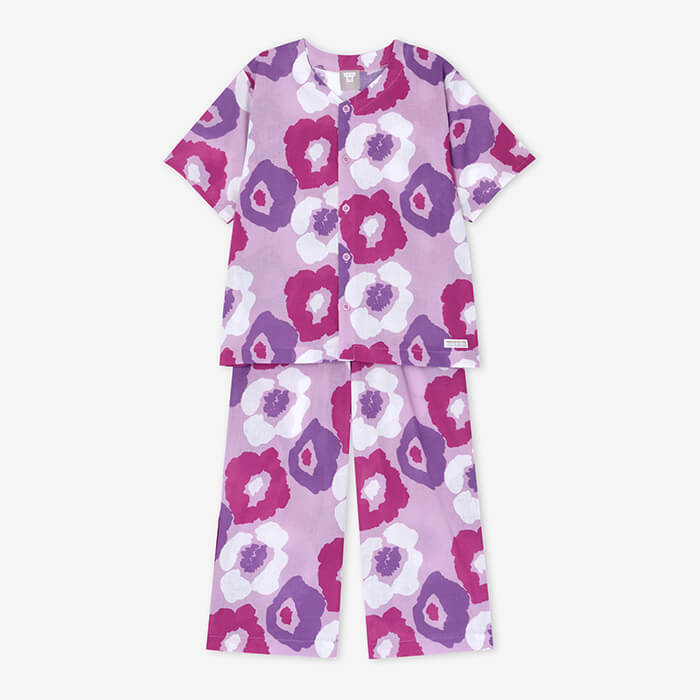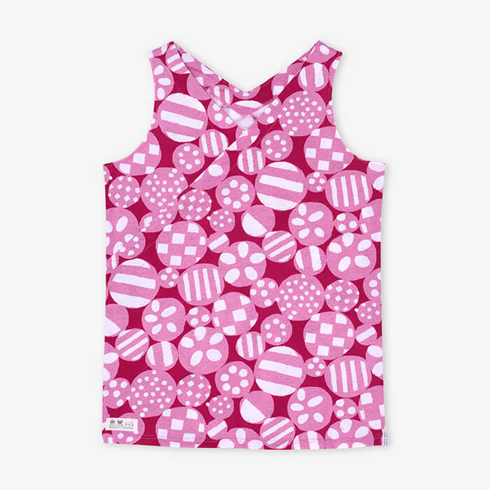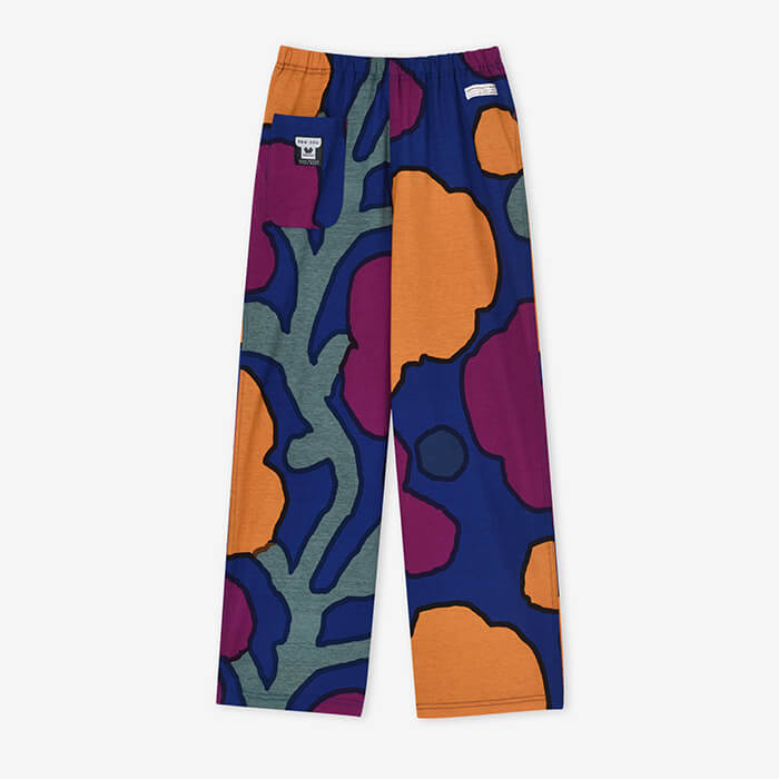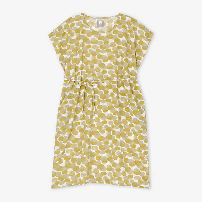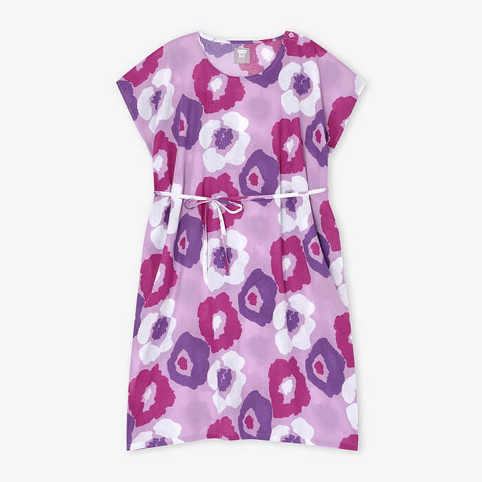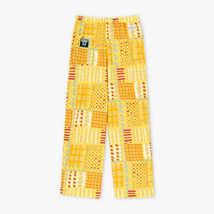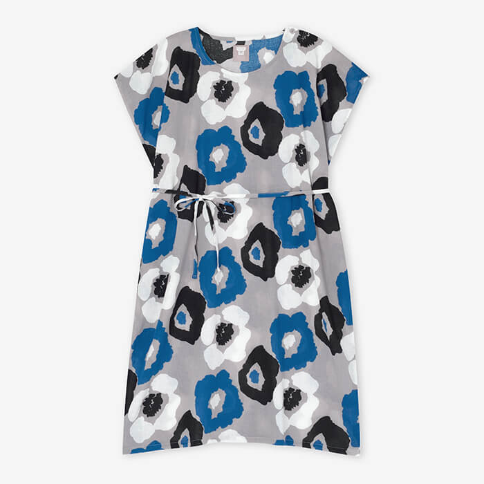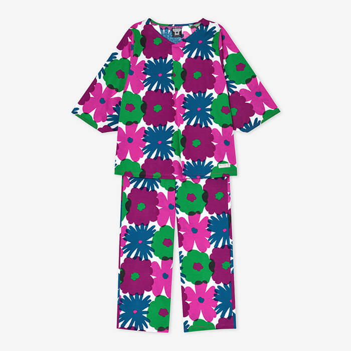 着物の衿袷わせや衿抜き、たっぷりとした袖が特徴の「筒袖」など、和服をイメージしたデザインを用いました。ポップなテキスタイルが日々の暮らしに彩りを添えてくれます。
