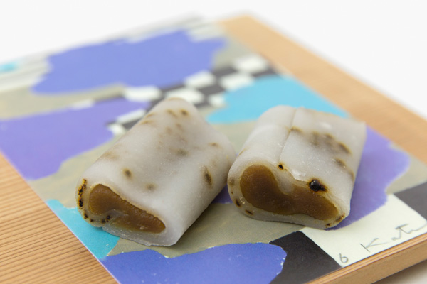 外郎の中に入っているのは、ほうじ茶味の餡。ほうじ茶を濃く煮出したもので、白餡を炊きました。大徳寺納豆の独特の塩気が、お菓子の甘さを引き立てています。