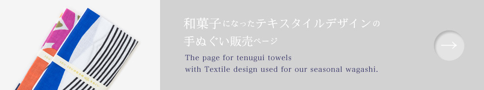 We collaborated with The noted Kyoto patisserie Kameya Yoshinaga.Together we created wagashi that emphasize Japanese seasonal changes as well as our graphic textile prints.