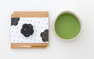 At Zaifu, we serve a cup of green matcha tea (or choice of coffee) and our wagashi based on our textile design.