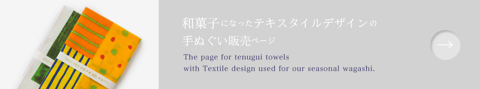 We collaborated with The noted Kyoto patisserie Kameya Yoshinaga.Together we created wagashi that emphasize Japanese seasonal changes as well as our graphic textile prints.
