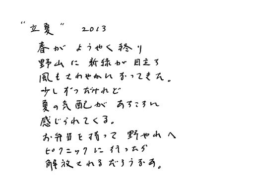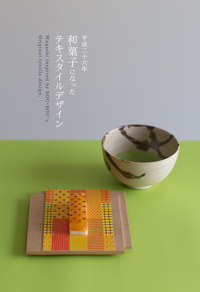 SOU・SOU's textile designer Katsuji Wakisaka has been publishing new textile design on monthly magazine, "PHP Special". The seasonal changes are expressed in our wagashi.
