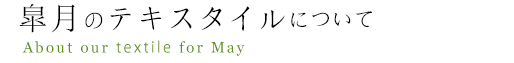 May’s wagashi is a pretty saogashi, Japanese sweets in long shapes, the same as the part of the textile design.