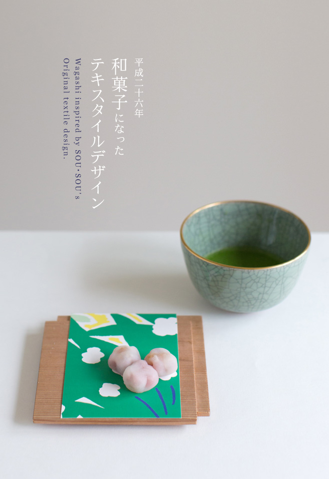SOU・SOU's textile designer Katsuji Wakisaka has been publishing new textile design on monthly magazine, "PHP Special". The seasonal changes are expressed in our wagashi.