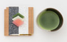At Zaifu, we serve a cup of green matcha tea (or choice of coffee) and our wagashi based on our textile design.