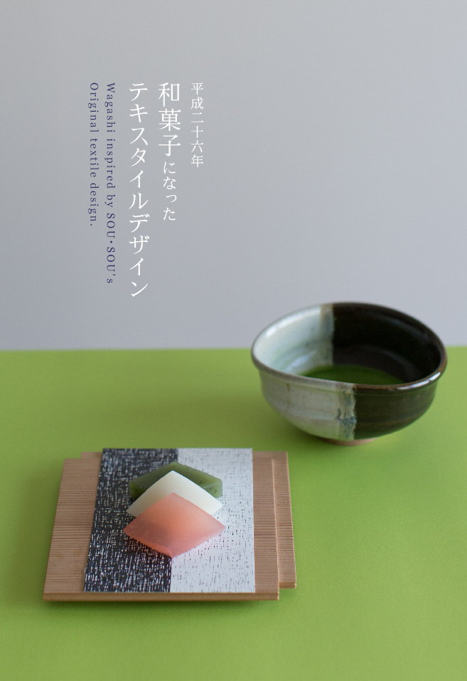 SOU・SOU's textile designer Katsuji Wakisaka has been publishing new textile design on monthly magazine, "PHP Special". The seasonal changes are expressed in our wagashi.
