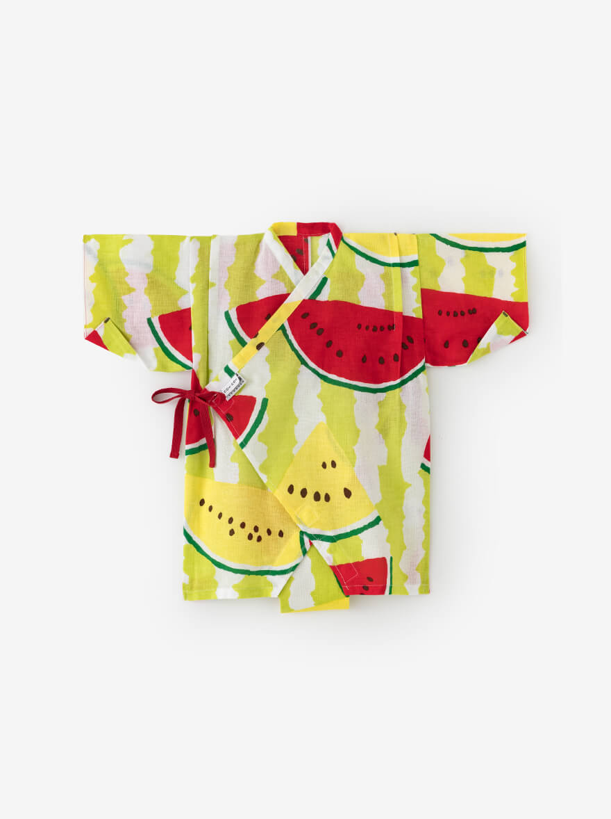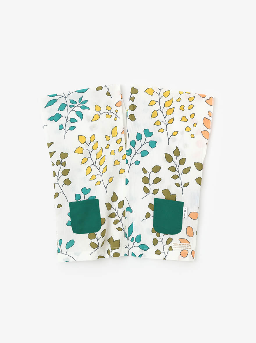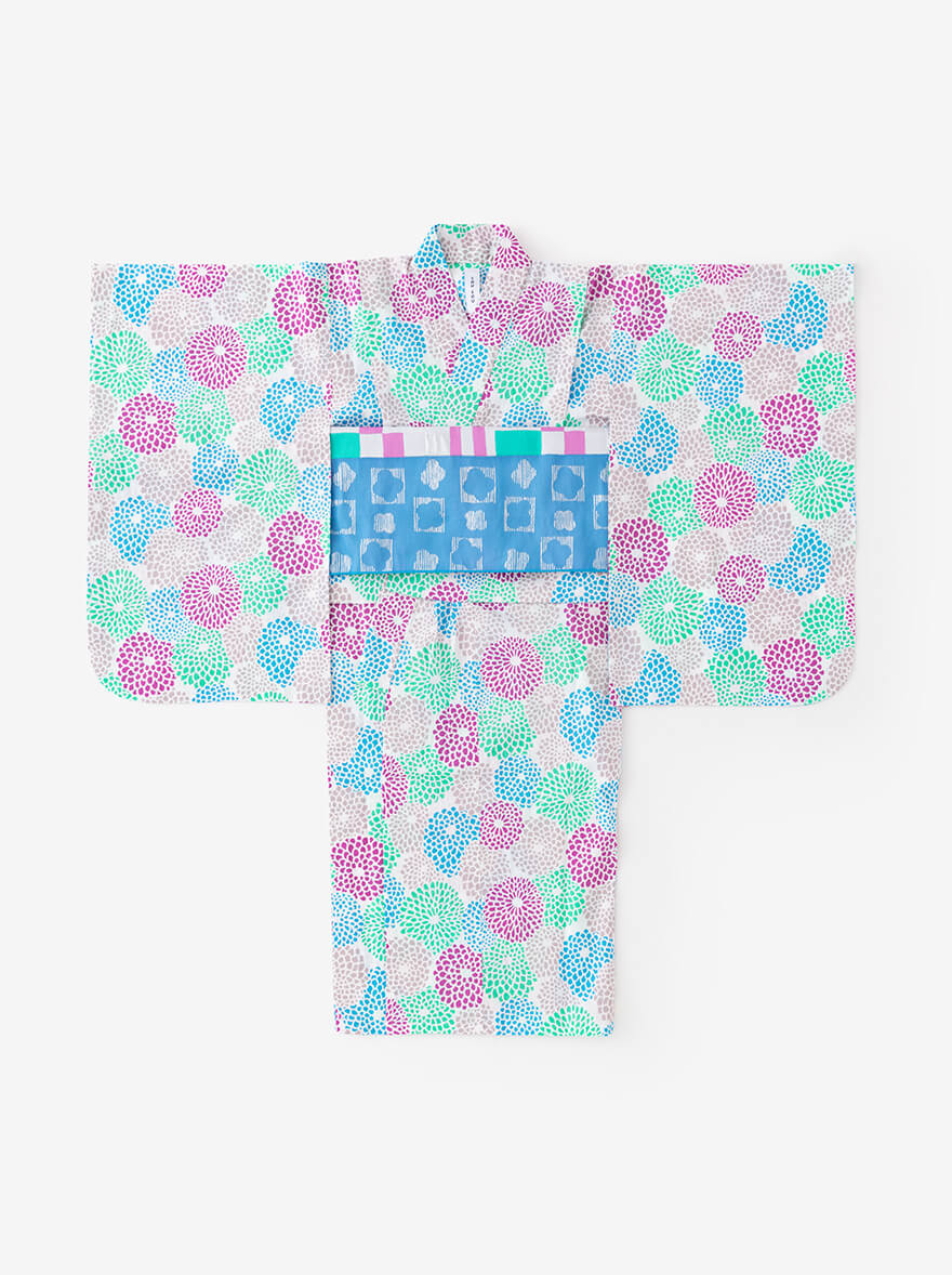 やさしい肌ざわりの『伊勢木綿』や、涼しくさわやかな着心地の『高島縮』で仕立てた子ども服。夏空の下、元気に走り回る子どもたちにぴったりのアイテムが揃いました。京型友禅で施されたポップなテキスタイルデザインが、夏の思い出に彩りを添えてくれます。