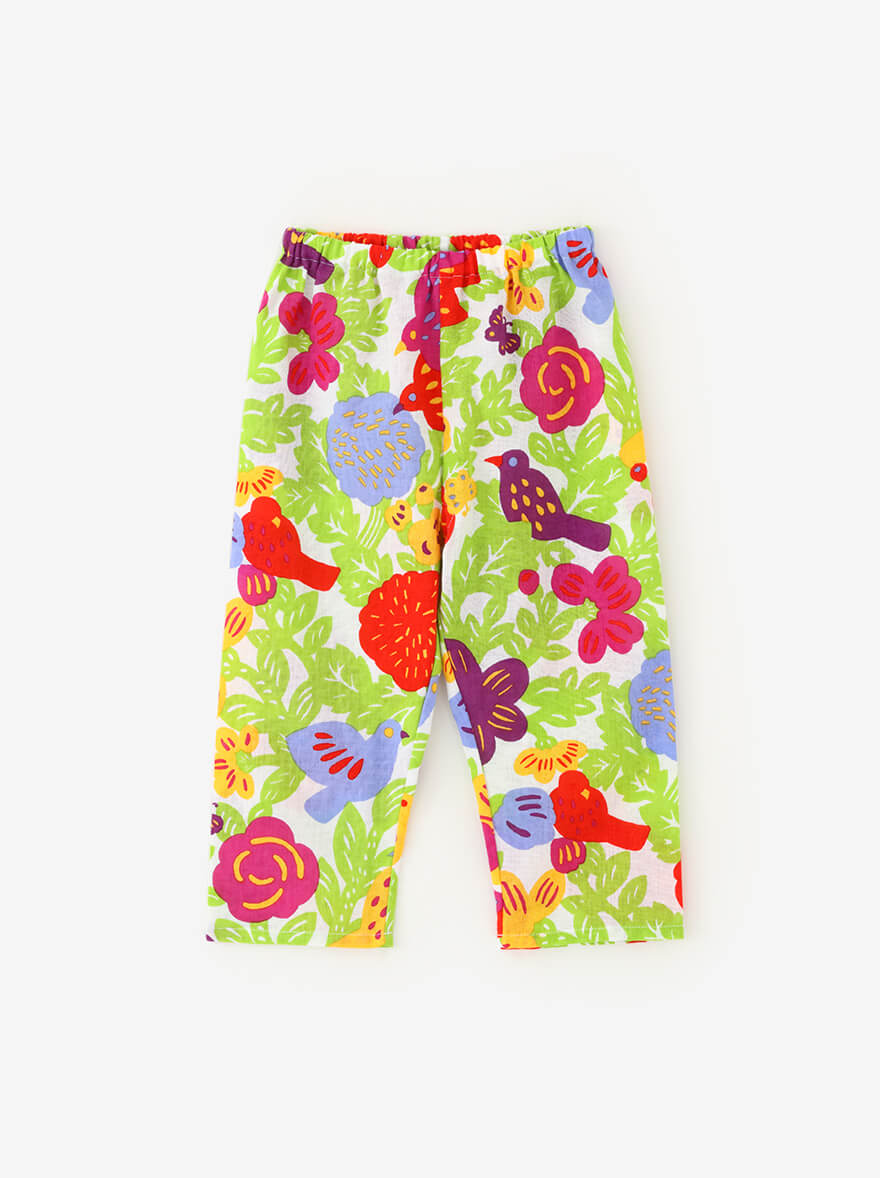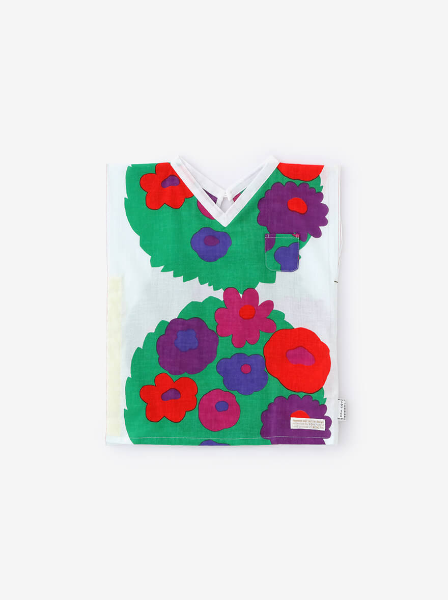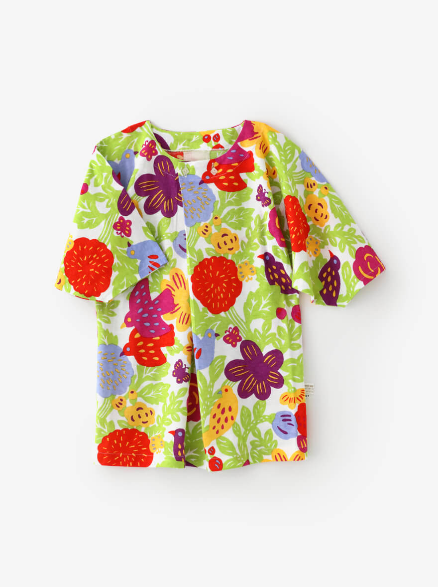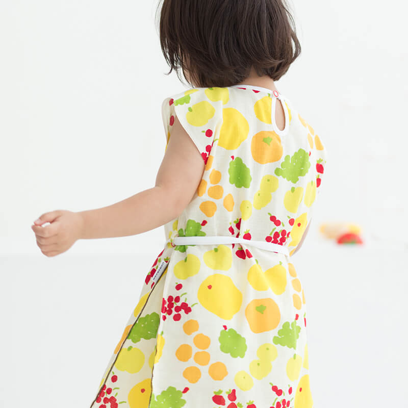やさしい肌ざわりの『伊勢木綿』や、涼しくさわやかな着心地の『高島縮』で仕立てた子ども服。夏空の下、元気に走り回る子どもたちにぴったりのアイテムが揃いました。京型友禅で施されたポップなテキスタイルデザインが、夏の思い出に彩りを添えてくれます。