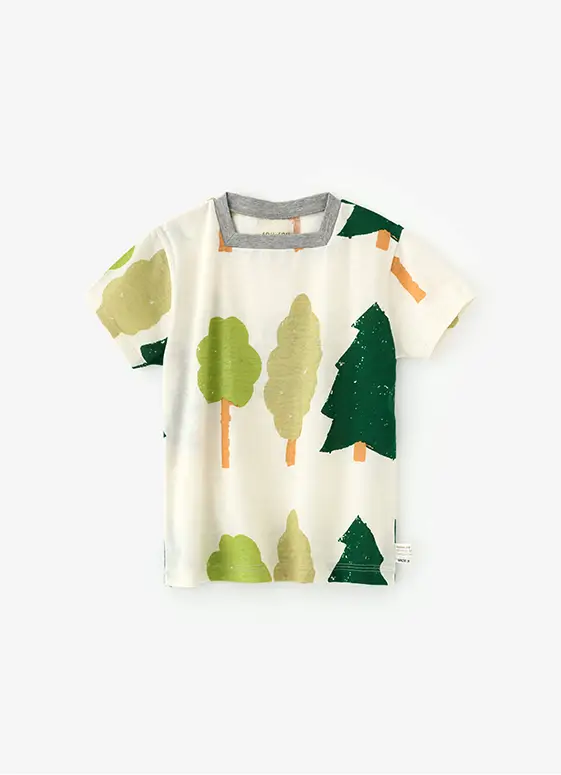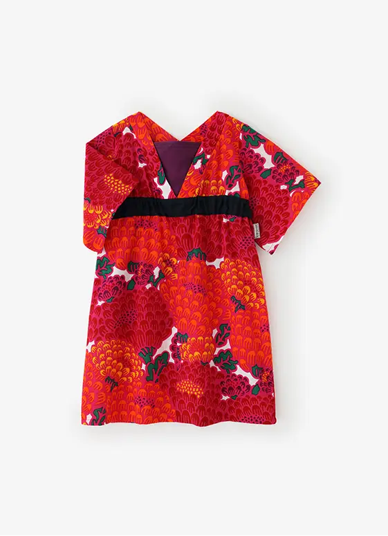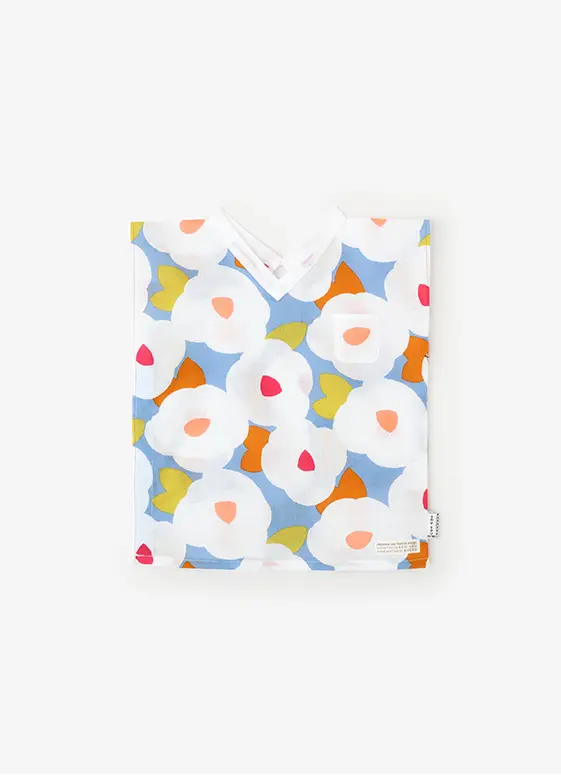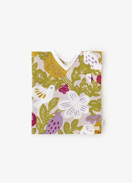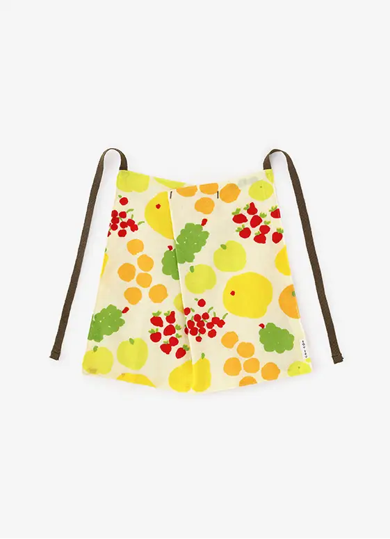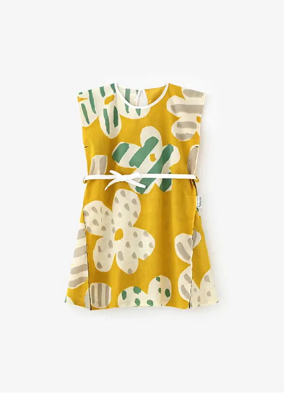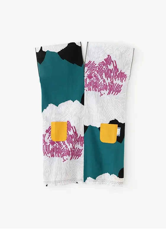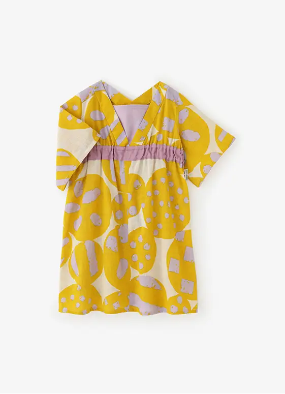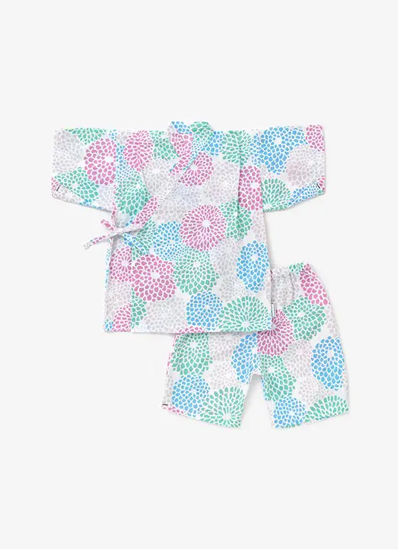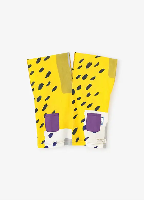 子ども服らしいポップで明るいテキスタイルデザインでアクセントに。また、吸水性と速乾性にも優れており、汗をかいたお子さまの肌もさらりと快適にやさしく包み込んでくれます。手ぬぐいの巾をそのまま活かして縫製した衣類もこども服ならではです。