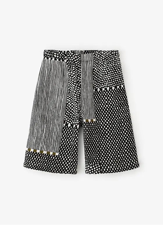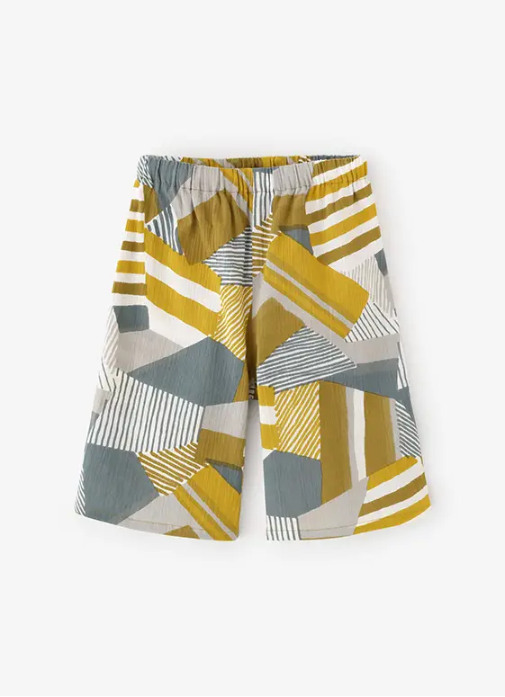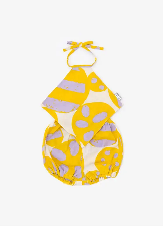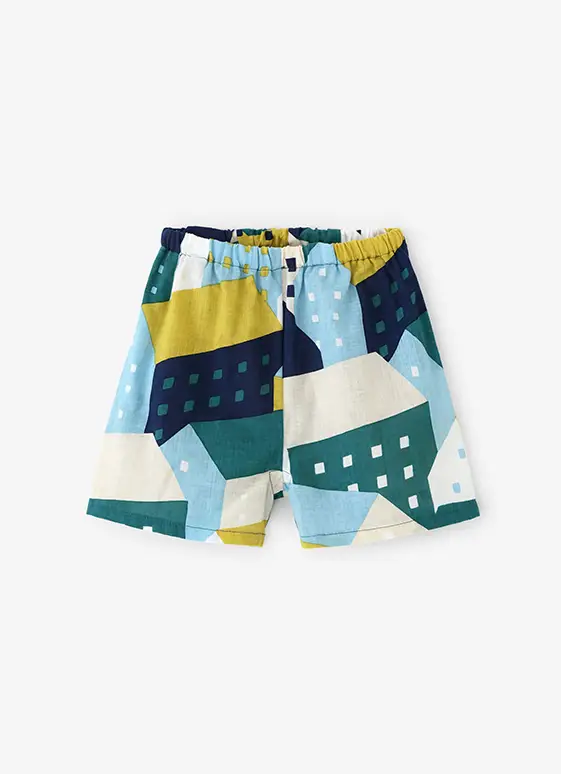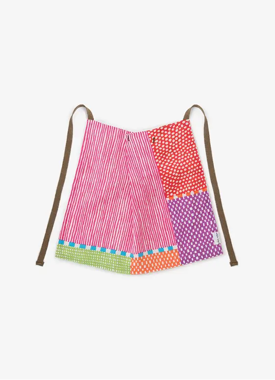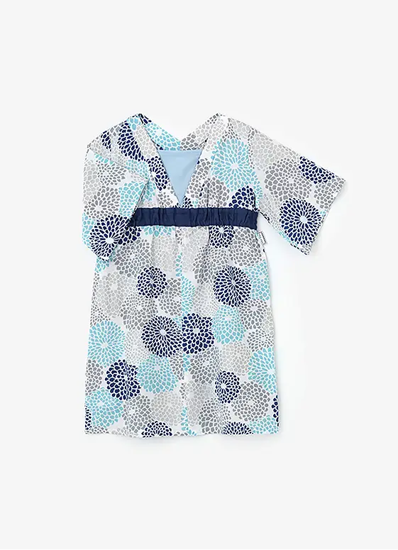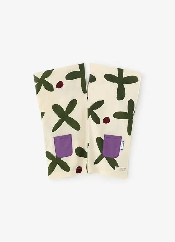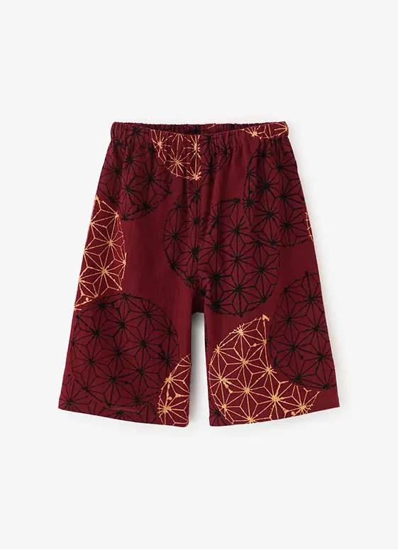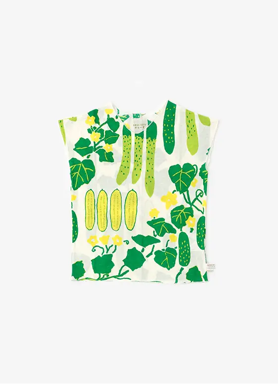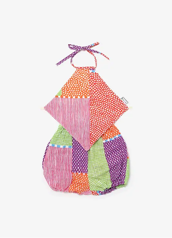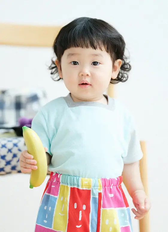 子ども服らしいポップで明るいテキスタイルデザインでアクセントに。また、吸水性と速乾性にも優れており、汗をかいたお子さまの肌もさらりと快適にやさしく包み込んでくれます。手ぬぐいの巾をそのまま活かして縫製した衣類もこども服ならではです。