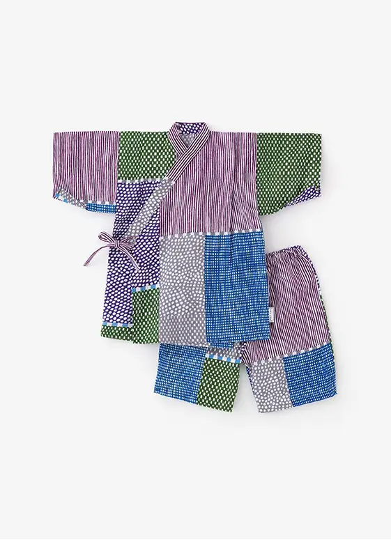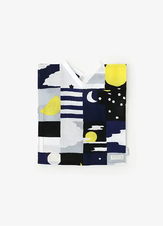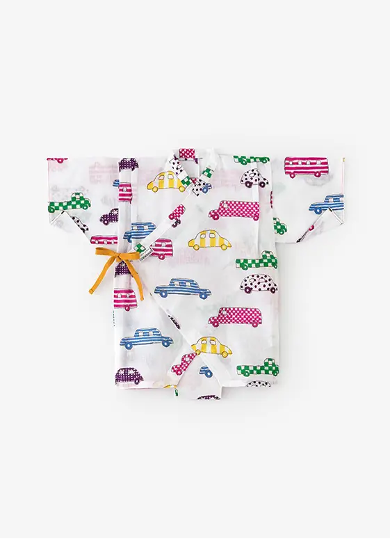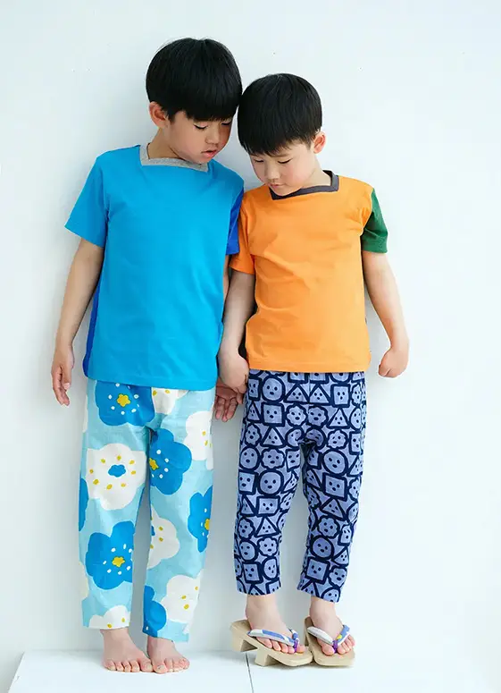やさしい肌ざわりの『伊勢木綿』や、涼しくさわやかな着心地の『高島縮』で仕立てた子ども服。夏空の下、元気に走り回る子どもたちにぴったりのアイテムが揃いました。京型友禅で施されたポップなテキスタイルデザインが、夏気分を盛り上げてくれます。