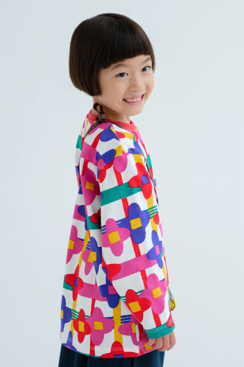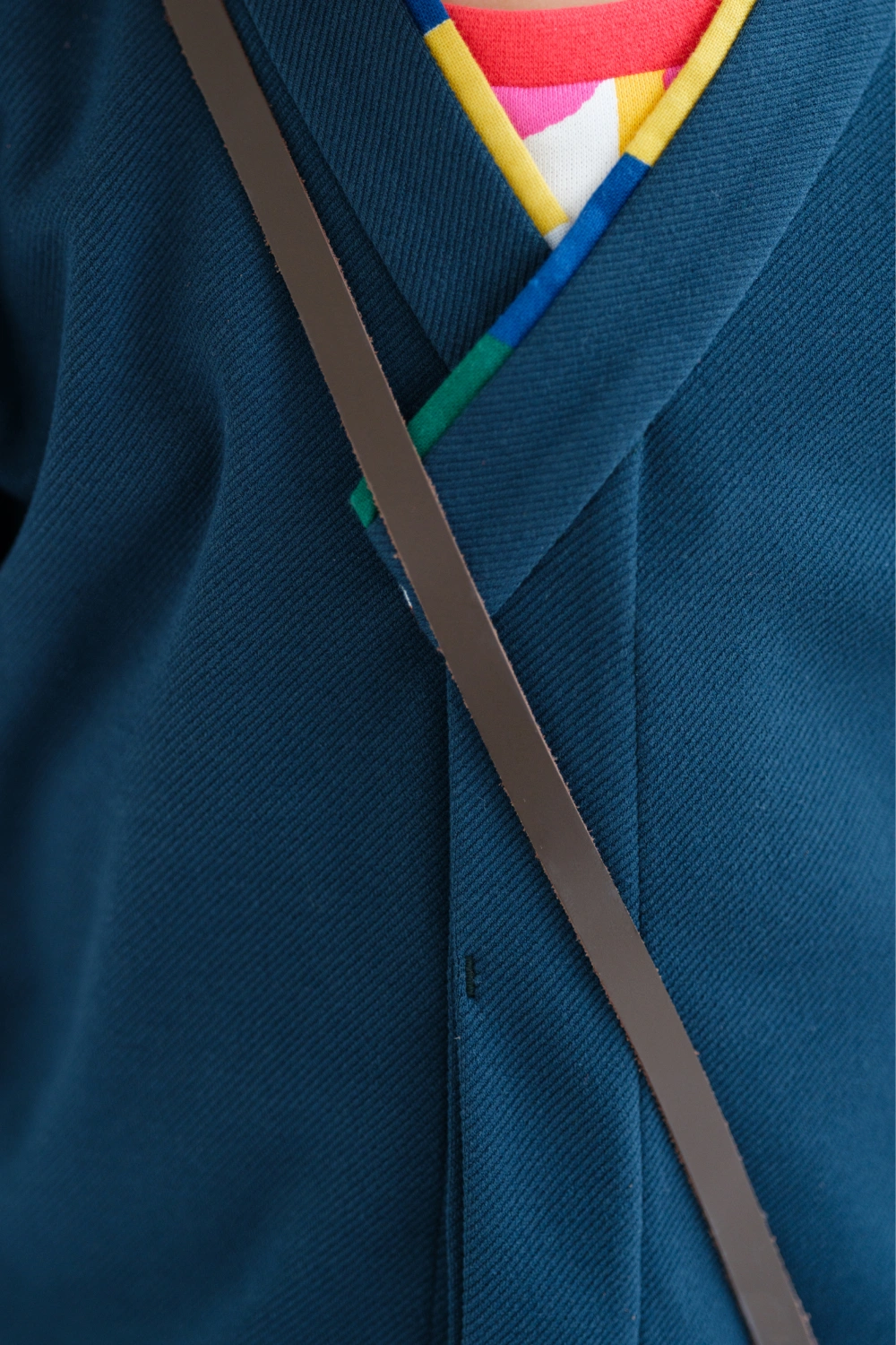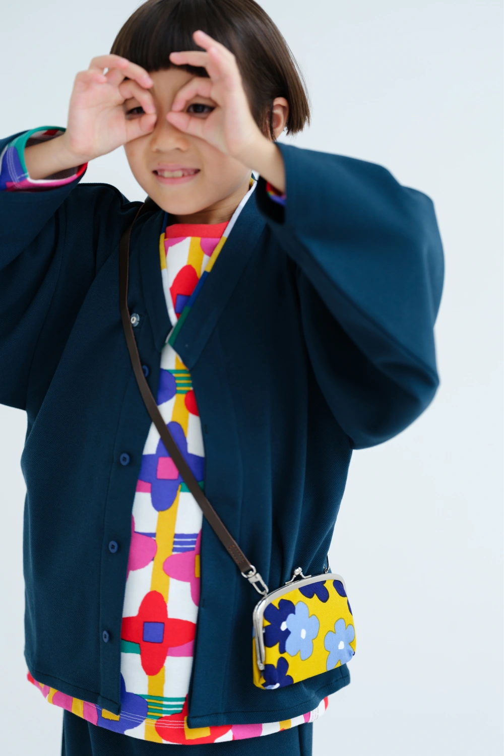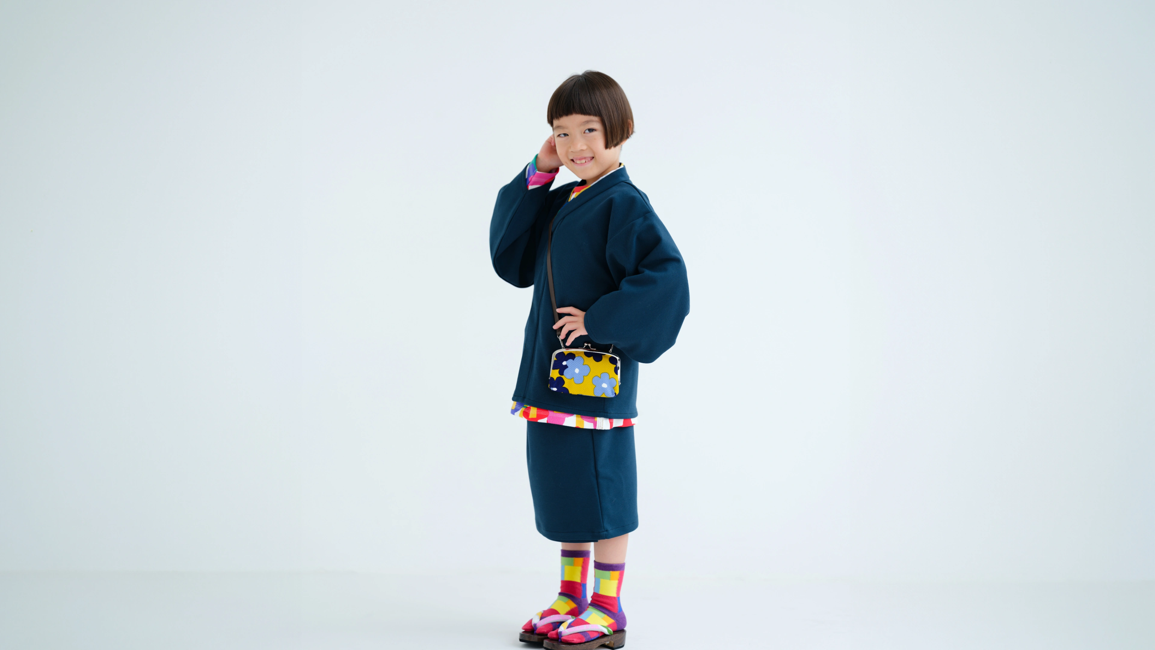 落ち着いた色味のセットアップに、小物のカラフルさが際立つコーデ。上品で落ち着いた印象の「こしき」はお姉さんらしい印象に。