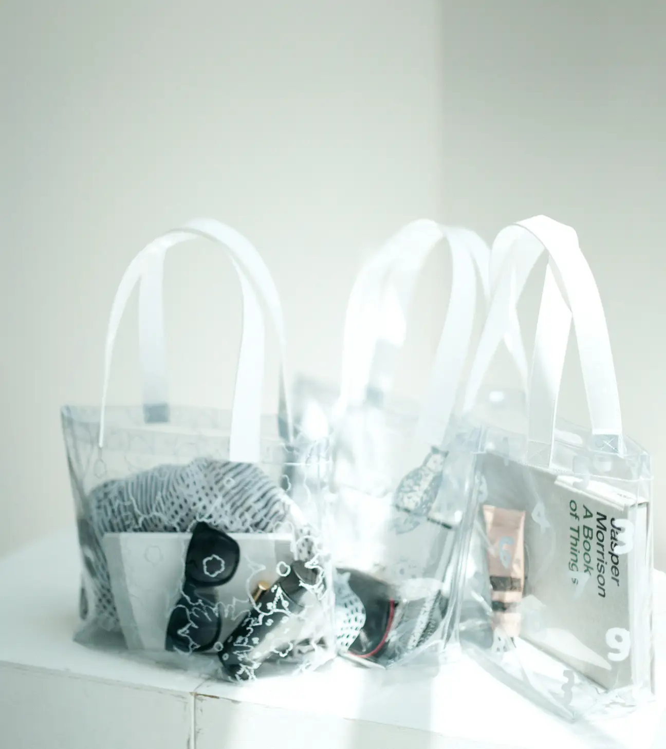 気分が上がる夏小物はいつもの装いにプラスして。今夏も人気のテキスタイルでPVCトートがラインナップ。