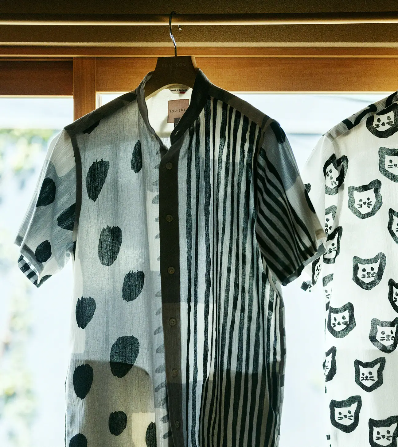 SOU・SOUの定番「高島縮」をはじめ、シャンブレーなどのさらりとした綿素材を用いたシャツ。気軽に着られて様になる、万能アイテムです。