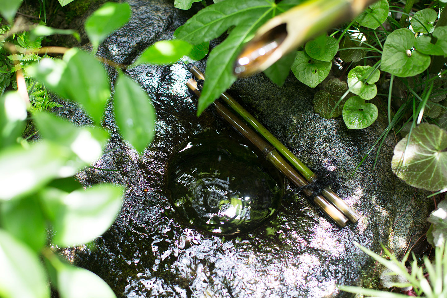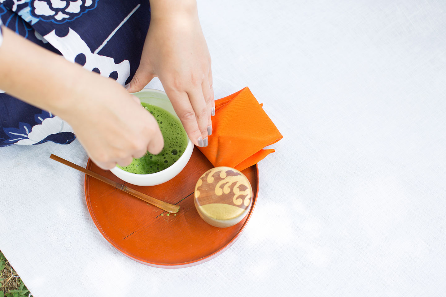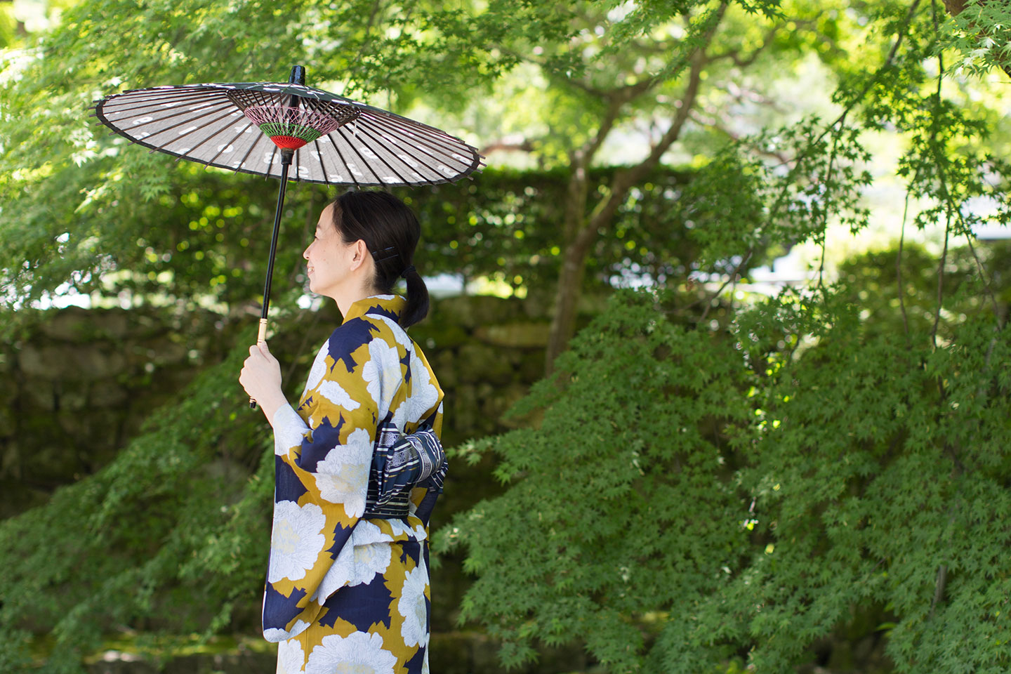 木陰で開く野点の会、裾を気にしつつ飛び石渡り。浴衣姿だと、より一層楽しく感じるはず。