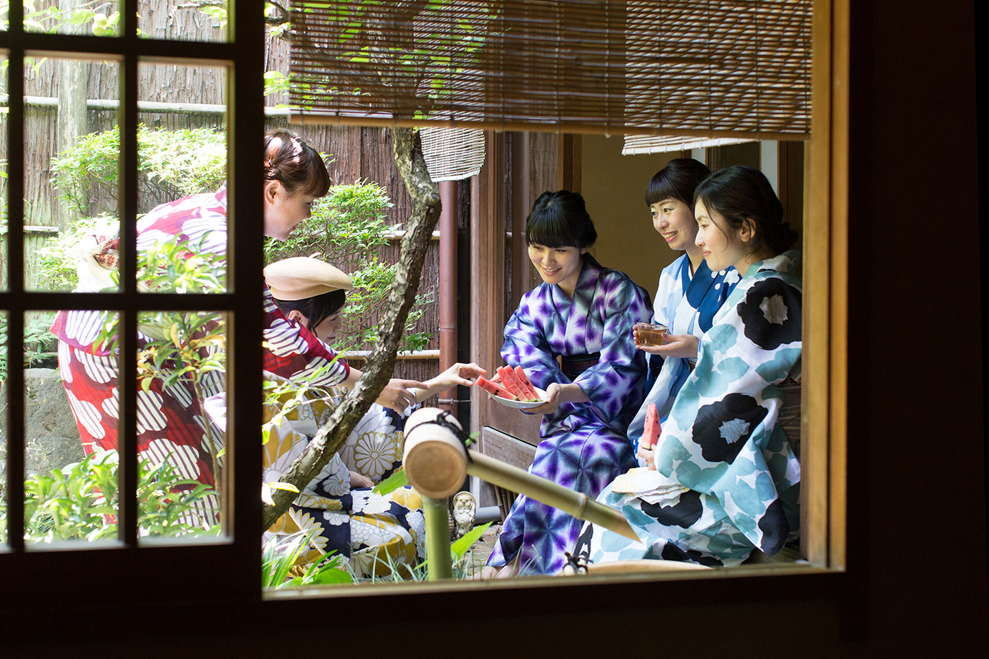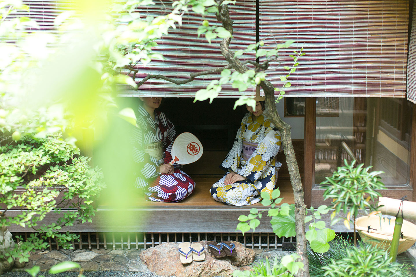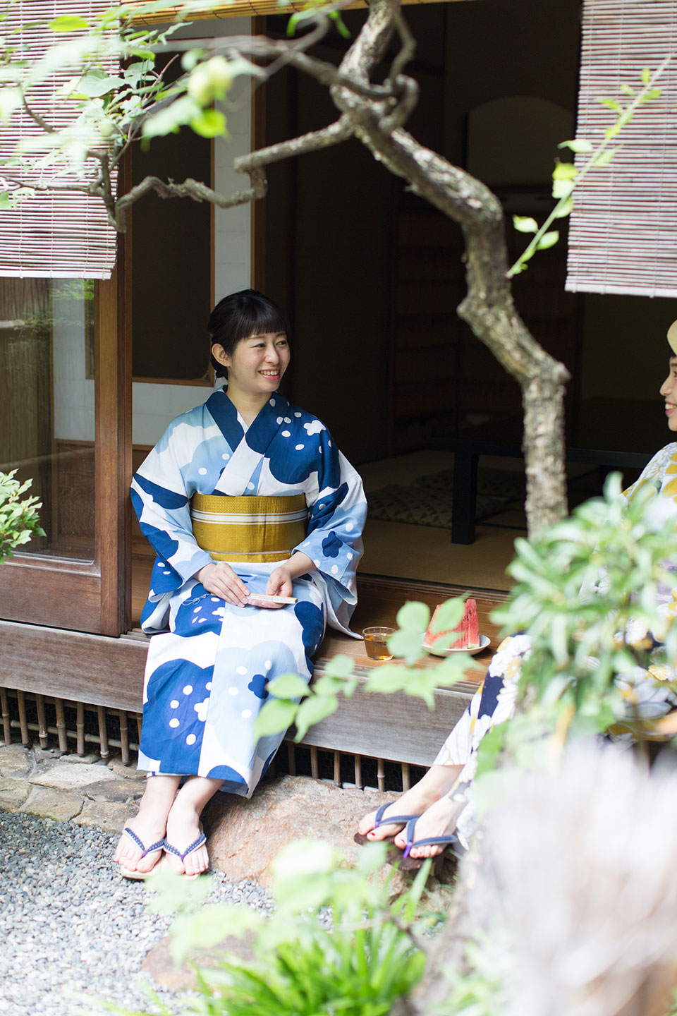 浴衣姿で縁側に腰掛け、庭から吹いてくる涼しい風を楽しむ・・・。今回は特別に、祇園の町家にお邪魔させて頂きました。