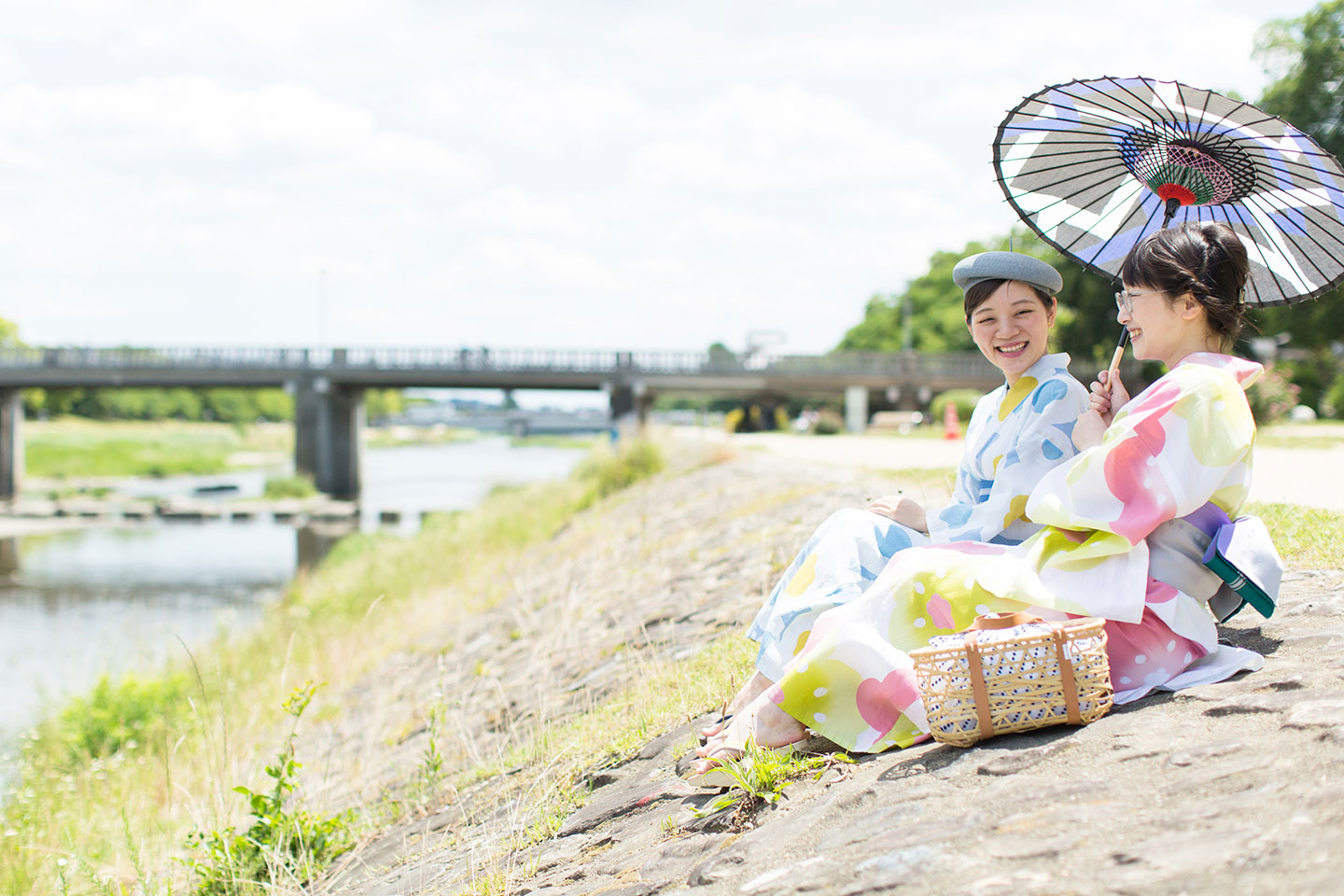 京都を代表する名所、鴨川の河川敷。川の流れを眺めつつ、心地よい風を感じることができます。