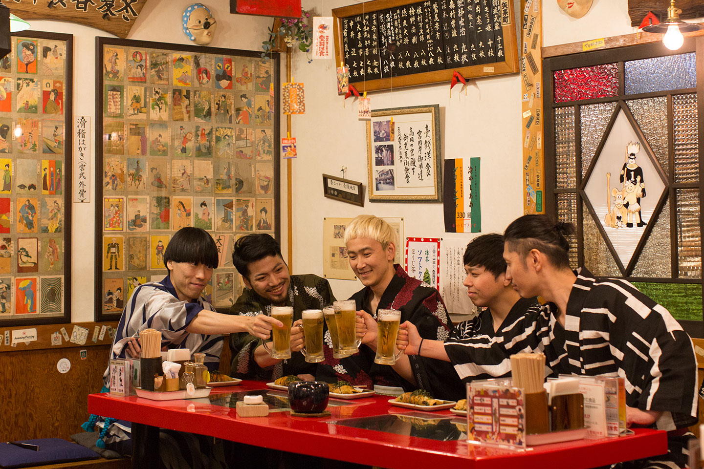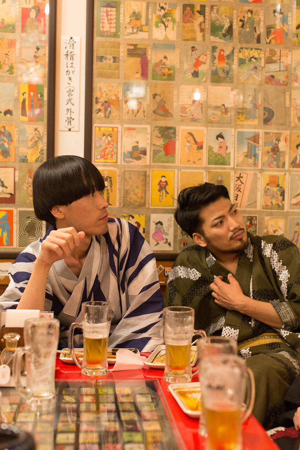 新作浴衣でバッチリキメた傾き者達が向かうは、夜の祇園界隈。ひと通り練り歩いた後は、ビール片手に祇園名物「壹錢洋食」を。