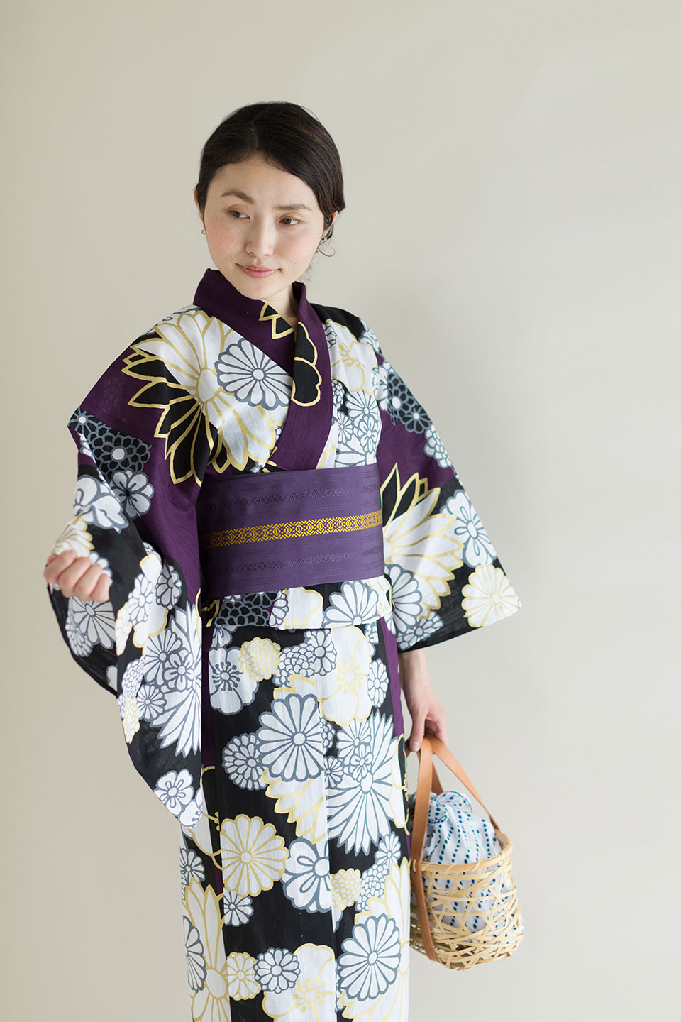 からげ帷子/濡羽色×雲間に菊