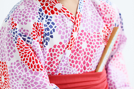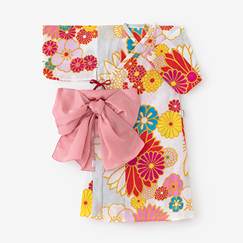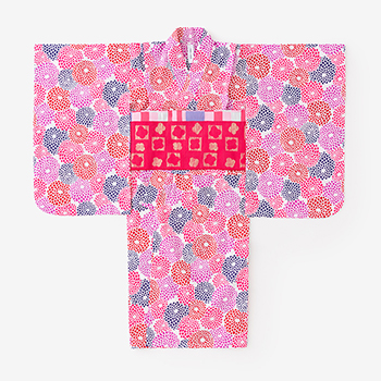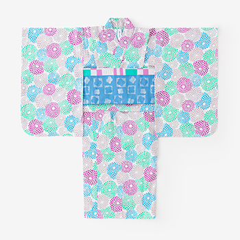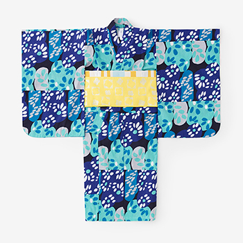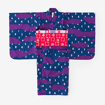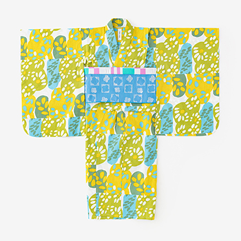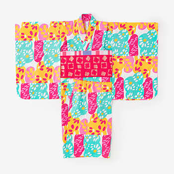 ポップで明るいテキスタイルデザインのこどもゆかた。