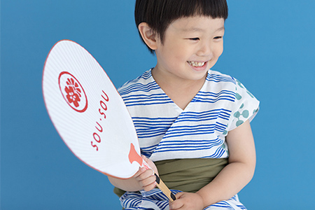 わらべぎの、夏のあそび着。ポップなこどもじんべいです。