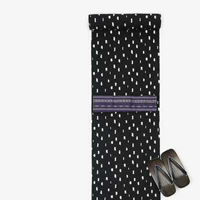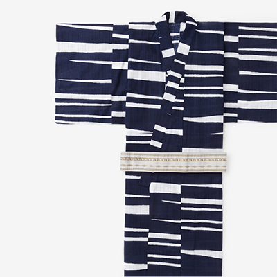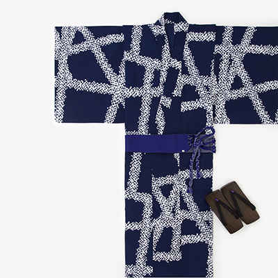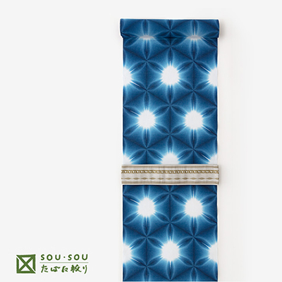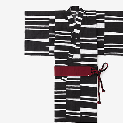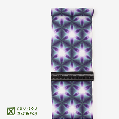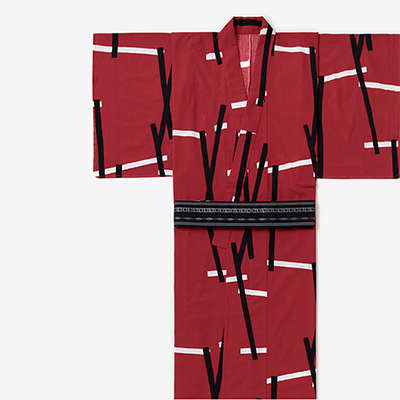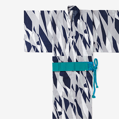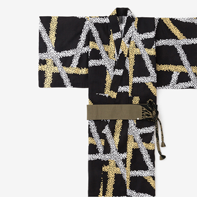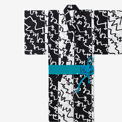 SOU・SOUオリジナルテキスタイルを施した、カブキモノのための浴衣。その着姿は独特の存在感を放ちます。