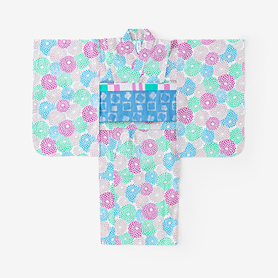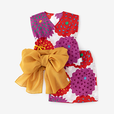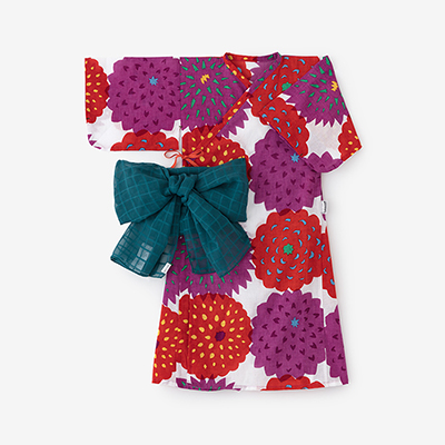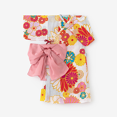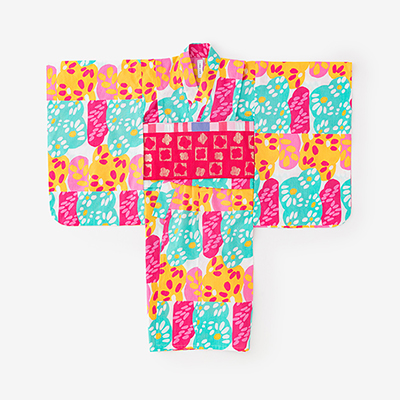 子どものかわいらしさを引き立てる色鮮やかな浴衣と帯。