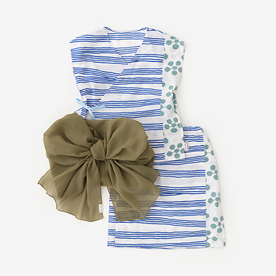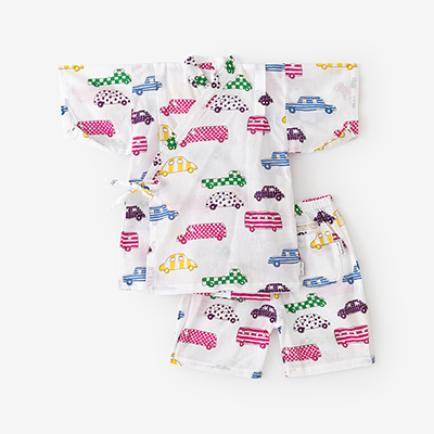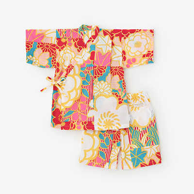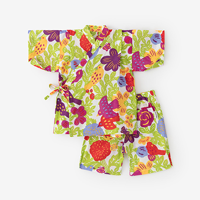 手ぬぐい生地を使った「簡易ゆかた」や「じんべい」は、肌ざわりがやさしく、気持ちよく汗を吸ってくれます。