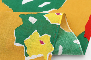 ヒゲや目でコミュニケーションを取るネコのユニークな表情がとってもかわいいテキスタイルです。