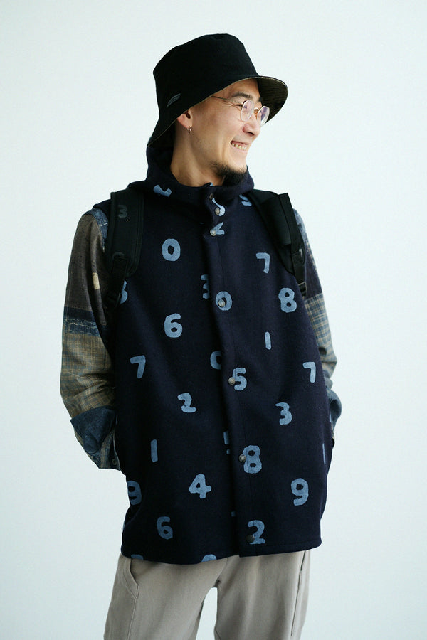 ■ウールチェック×ボア BIKEフードベスト/SO-SU-U ブルーブラック
