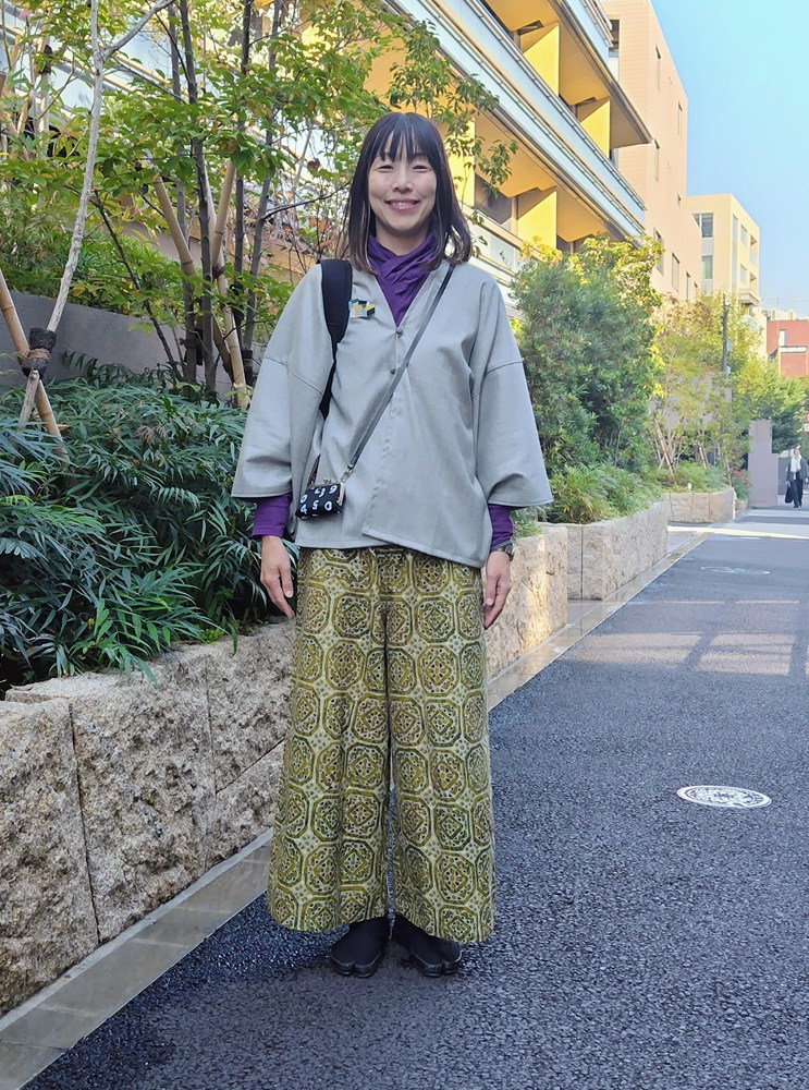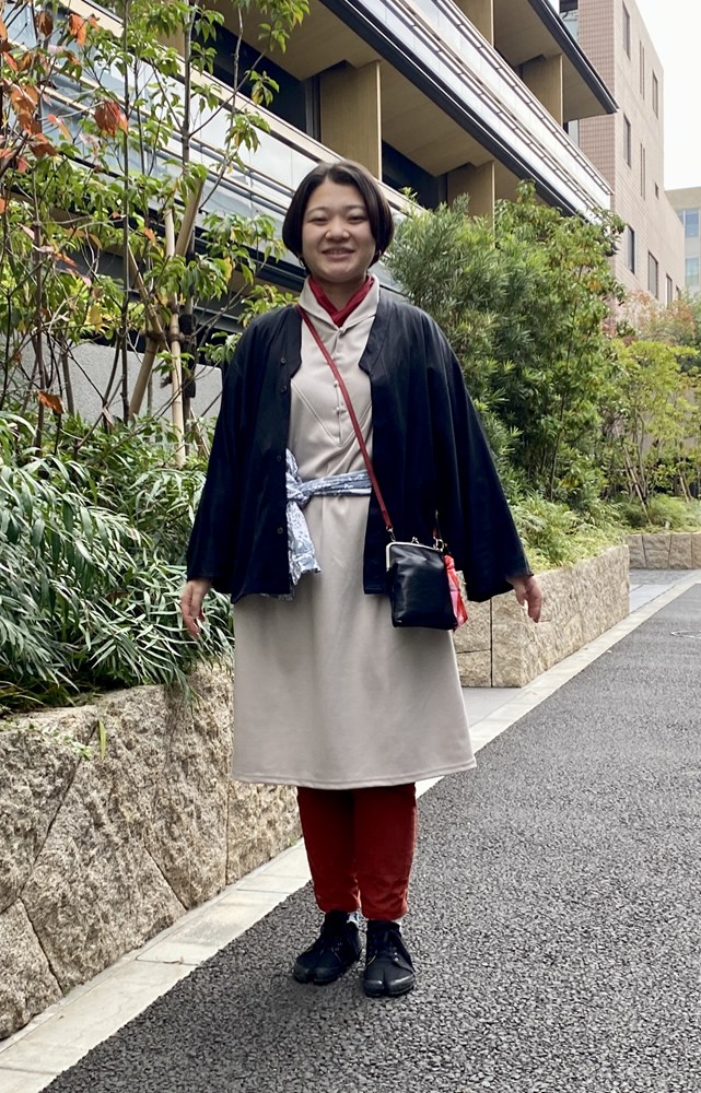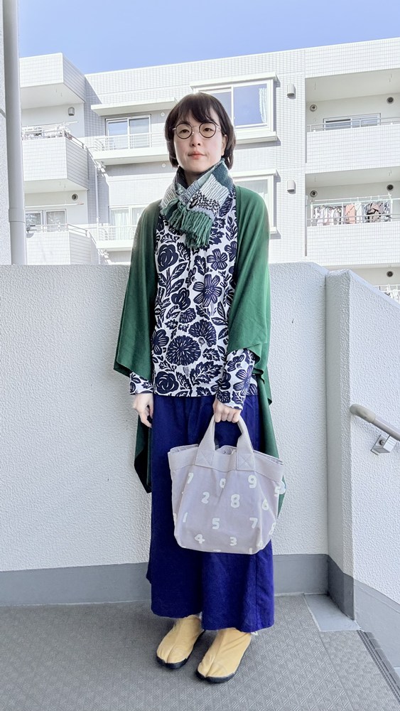 着丈はやや長めですが、スリットがあるのでとても歩きやすいです。個人的には前に少し反るようなシルエットがいいなと思っています。