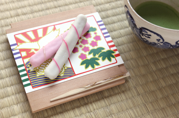 七五三につきものの千歳飴を「雪平(せっぺい)」という 柔らかいお餅で作り、紅白に色づけました。