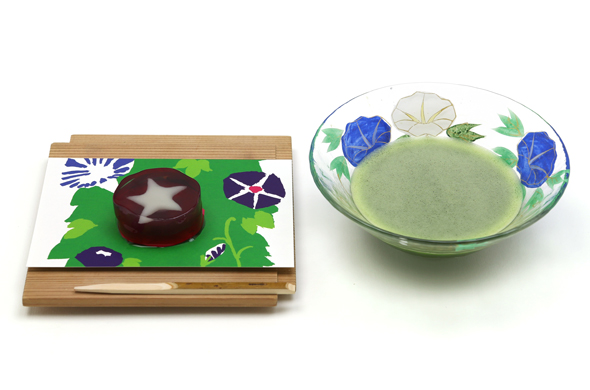 パッと大きく花開いた朝顔を模った、涼しげな寒天の御菓子です。