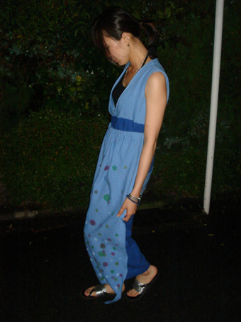そこから、スエットのように楽で、でもだらしなく見えない物ってないかな?と感じました。伊勢木綿の特徴が使って洗うほどにふんわり柔らかくなる性質と言うことを聞き、お母さんが毎日洗って色あせているものって何かと考え“エプロン”が出てきました。そこから、スエット+エプロンの楽で機能性のある要素を取り入れた外に着て出ても違和感のないものをデザインしました。