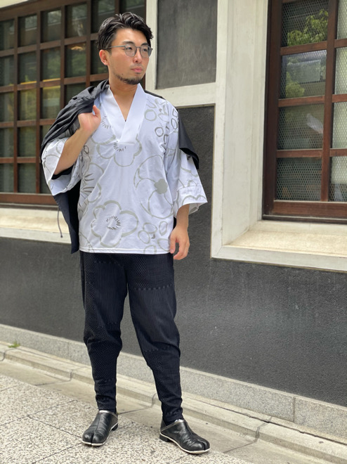 ■身長173cm ■クールマックス 鹿の子編 風靡 上/桃山 略 つくも Lサイズ ■高島縮 20/20 裁付えんゆう穿き/間がさね 墨黒 Lサイズ