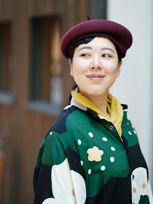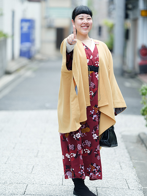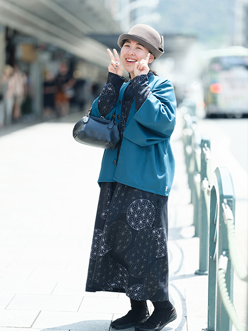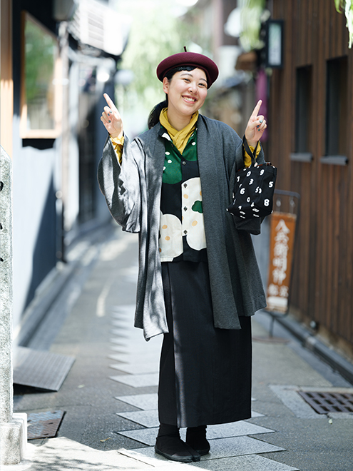 美しい発色が特徴の上質なウール生地「モスリン」を主役にしたコーディネートやさらりと纏った羽織が目を引くスタイルなど・・・ゆったりとした着心地と秋色のレイヤードで自分らしさを表現した5つのよそおいです。(企画主任 山本聖美)