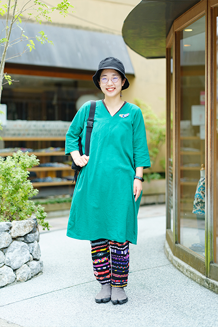 高島縮 40/20 空羽 抜衿長方形衣 七分袖/常磐緑/女性Fサイズ