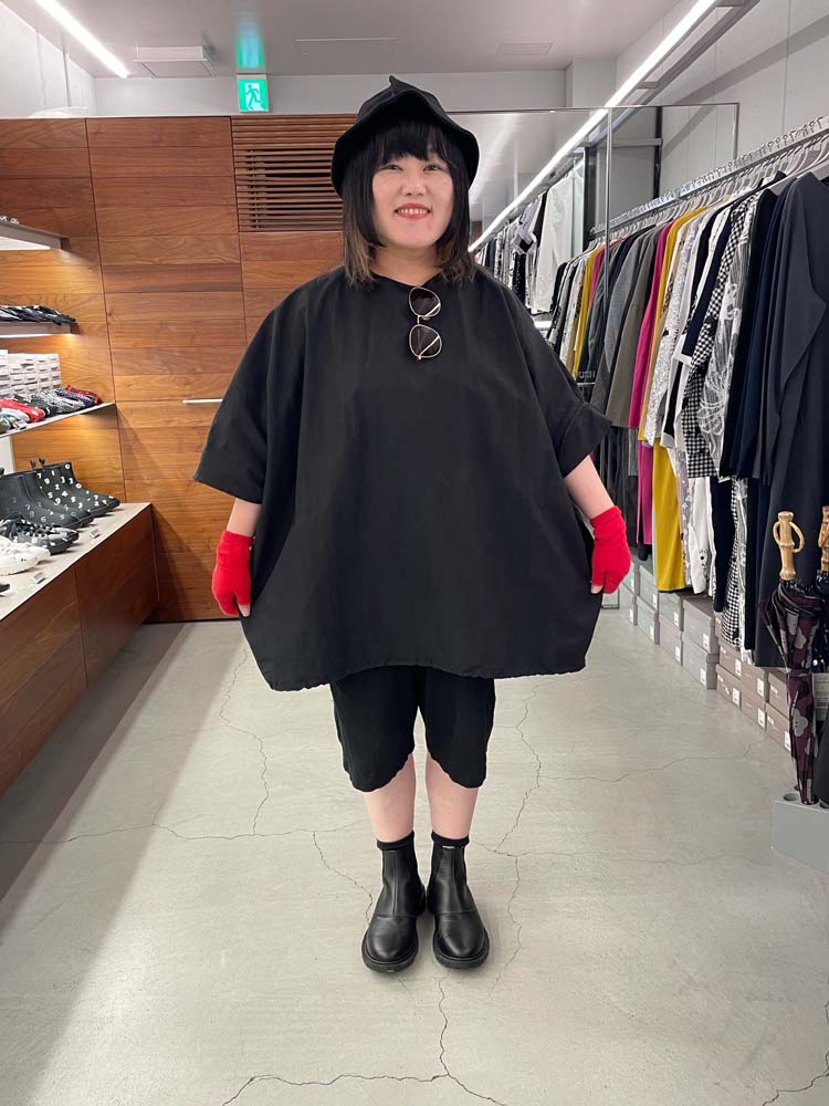 オーバーサイズなトップスにイージーショーツで足元スッキリ