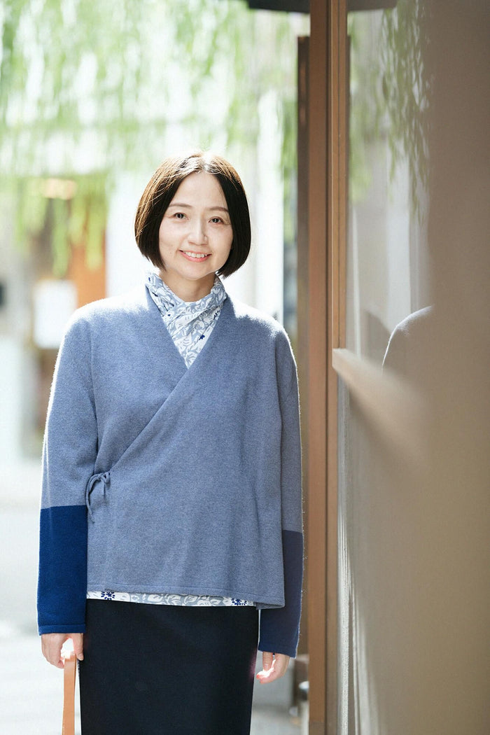 京都では昔、「友禅流し」と言われる染めた布を綺麗な川で洗い流すという習慣があり、川に流れた一筋の染料が趣がありました。その景色をイメージしています。