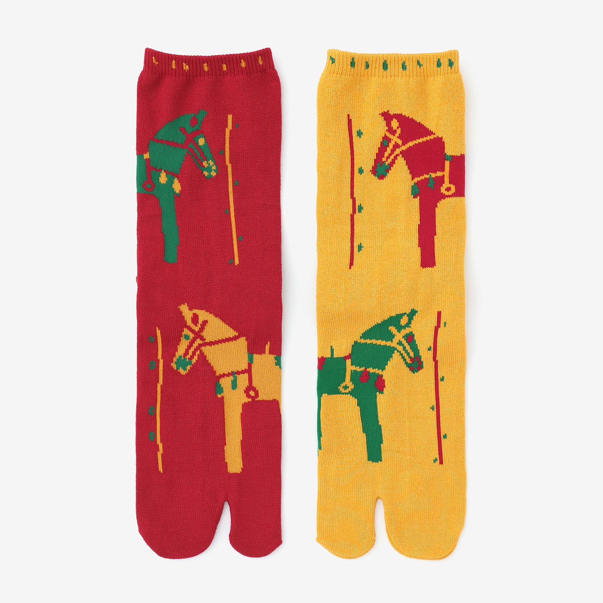 ■足袋下(普通丈)/干支 午(うま)令和8年 臙脂色(えんじいろ)×芥子色(からしいろ)