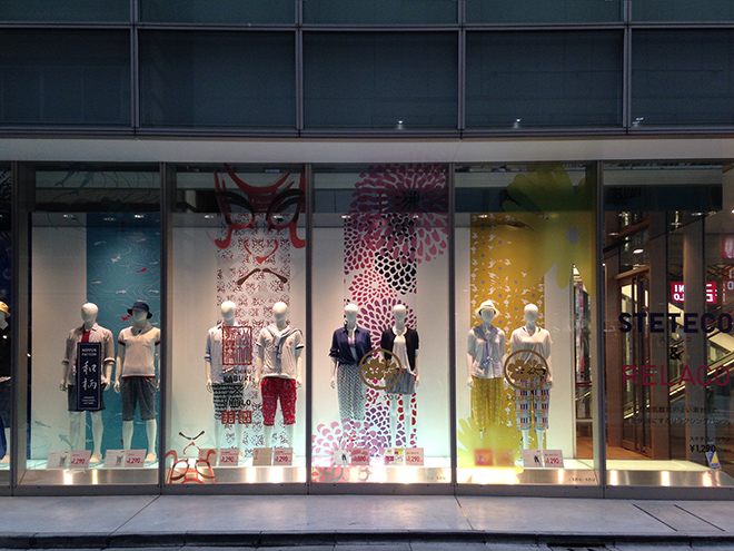 ユニクロ銀座店はウインドーにドーンとSOU・SOU。