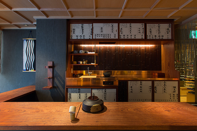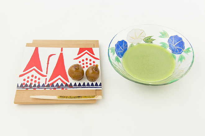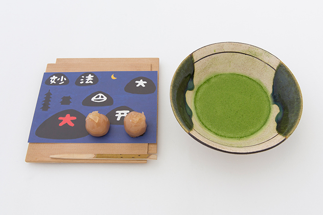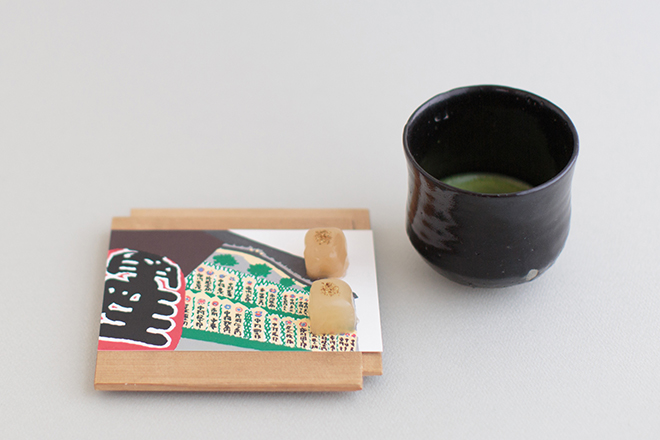 青山店を移転リニューアルした際に作った茶席。この茶席だけでお出ししている”京旬菓(きょうじゅんか)”という和菓子がある。