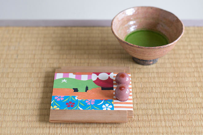 本当は、青山店の茶席は東京の和菓子屋と組んで作れたら良いな・・・と思っていたのだが、京都でやっている”和菓子になったテキスタイルデザイン”の和菓子作りの工程をそのまま東京で出来る気がしない。