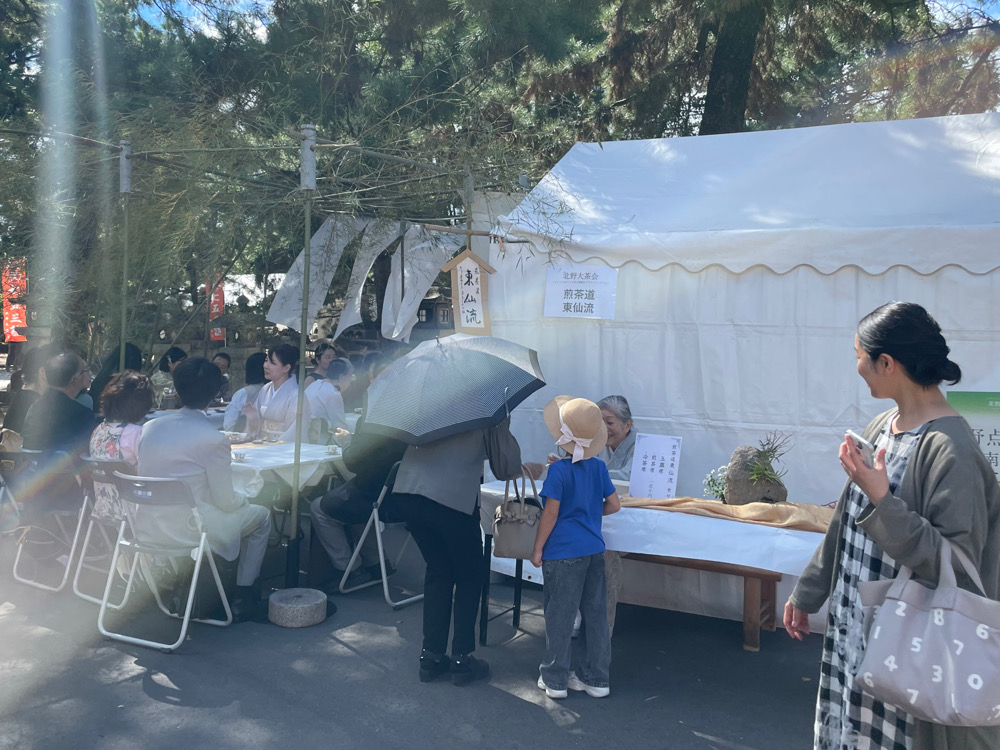 境内には屋外茶席(野点・のだて)やお茶関連の出店も並び、気持ちの良い秋空の下で多くの人が気軽にお茶を楽しんでいました。