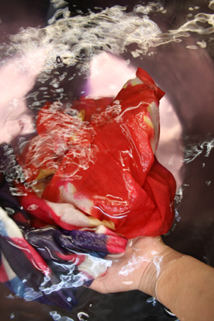テキスタイルは、書道家、雨花の作品「書の呼吸」。