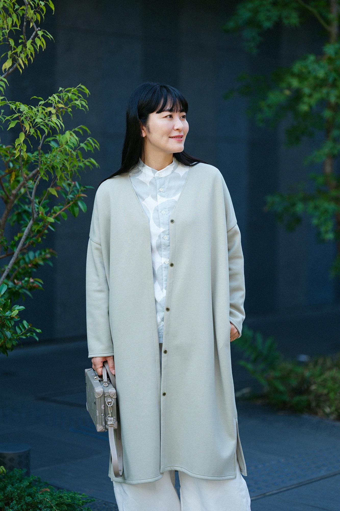 ・インレイジャージー スタンドカラーライトコート マキシ丈/敷石 ホワイト 女F