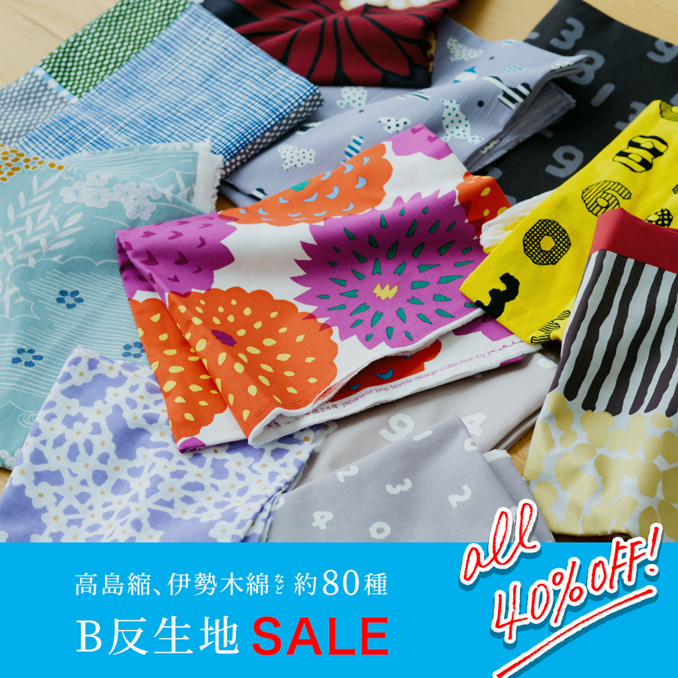 約80種類の生地が全て40%OFF!