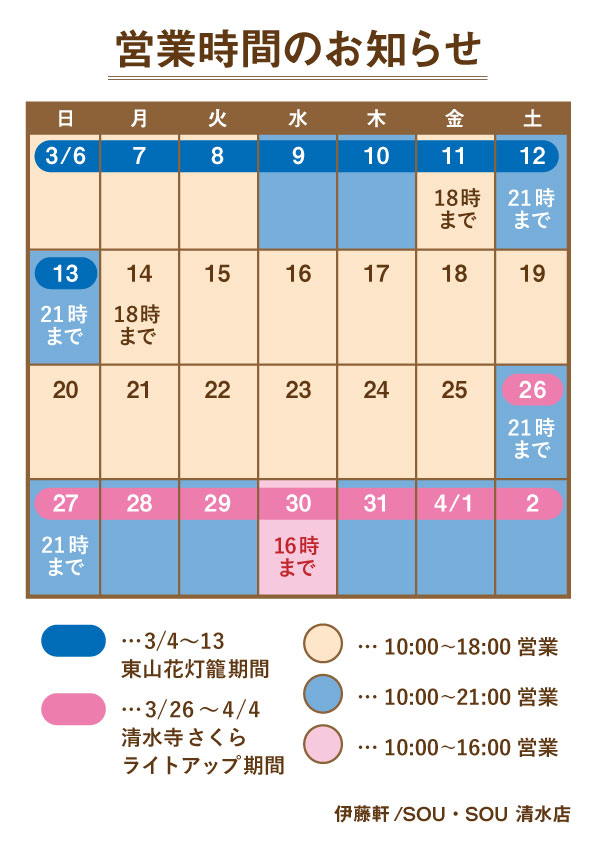 “【伊藤軒/SOU・SOU 清水店】3月の営業について”