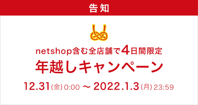 【実施店舗】netshop含む全店舗 ※実店舗1/1、1/2休店