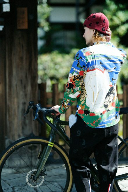 SOU・SOUstaff廣秋 優里が、日本の現代傾き和装、傾衣で傾(かぶ)く。